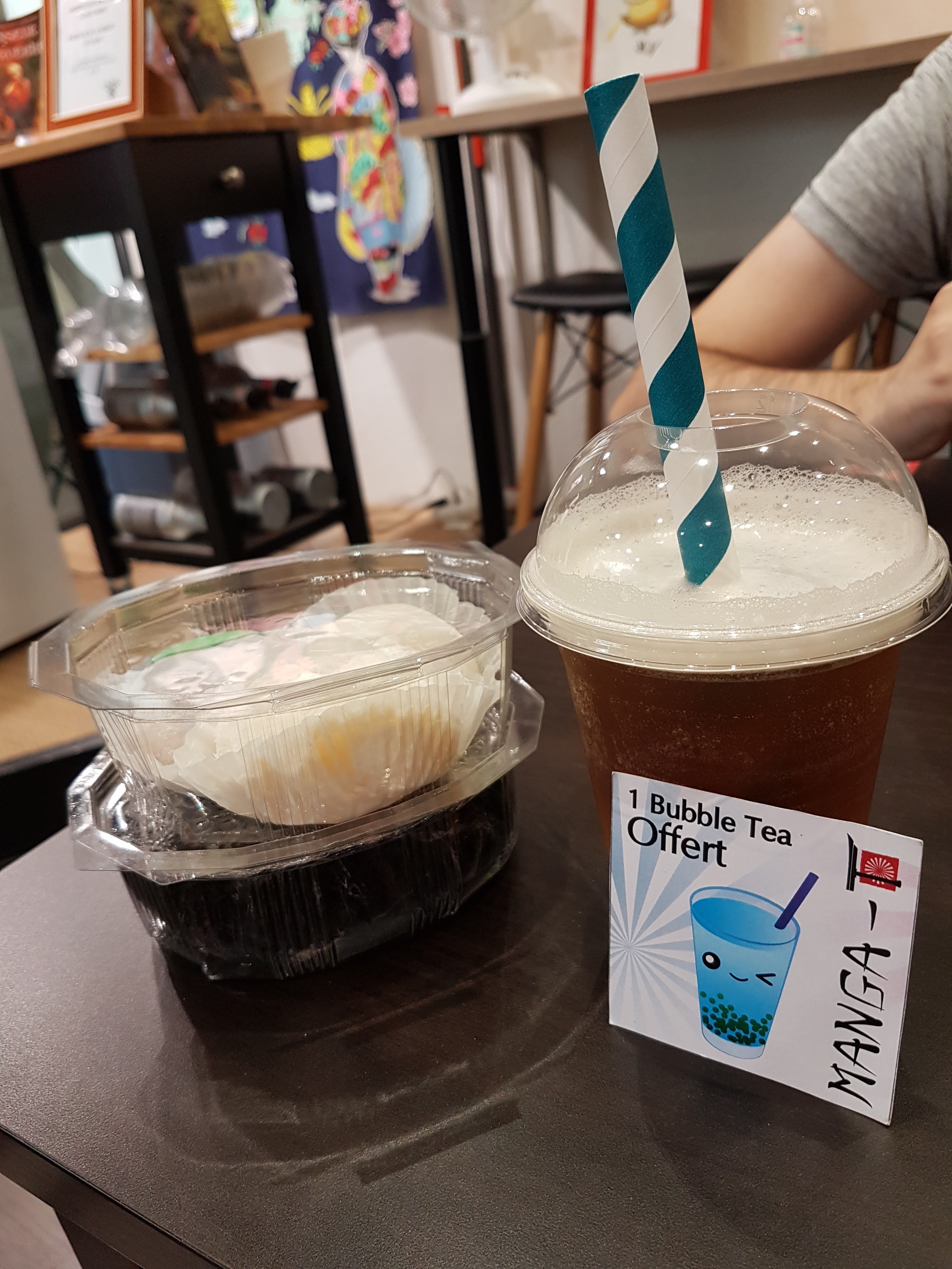 Posté le 16/02/2022 à 14:07"Seul bubble tea de Dijon qui proposait mon préféré : le brown sugar! Il est pas trop sucré (pour moi c'était dommage car j'adore le Sucre mais ceux qui préfèrent quelque chose de doux prennez le sans hésiter). Leurs petites pâtisseries sont bonnes! La déco est vraiment mignonne également et la présence de mangathèque nous fait rentrer dans l'univers! Présence de produit japonais à acheter et je trouve ça plutôt cool! Seule bémol : beaucoup d'attente mais ne monsieur était seul et il a du gérer beaucoup de chose en même temps. Je devais être dans une période de rush mais il a su gérer toute la clientèle! Bravo à lui"